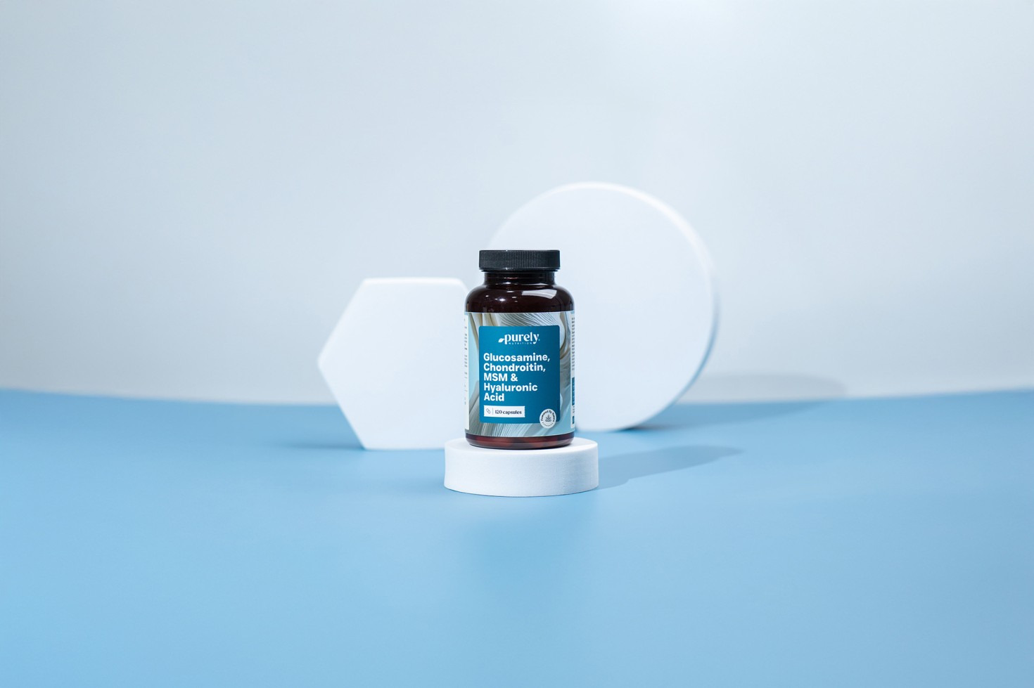 Zutaten: Glukosamin HCL (Fisch), Chondroitinsulfat (Fisch), Methylsulfonylmethan (MSM), pflanzliche Kapselhülle: HPMC, Trennmittel: Magnesiumsalze von Speisefettsäuren, Natriumhyaluronat (Hyaluronsäure), Trennmittel: Siliciumdioxid.